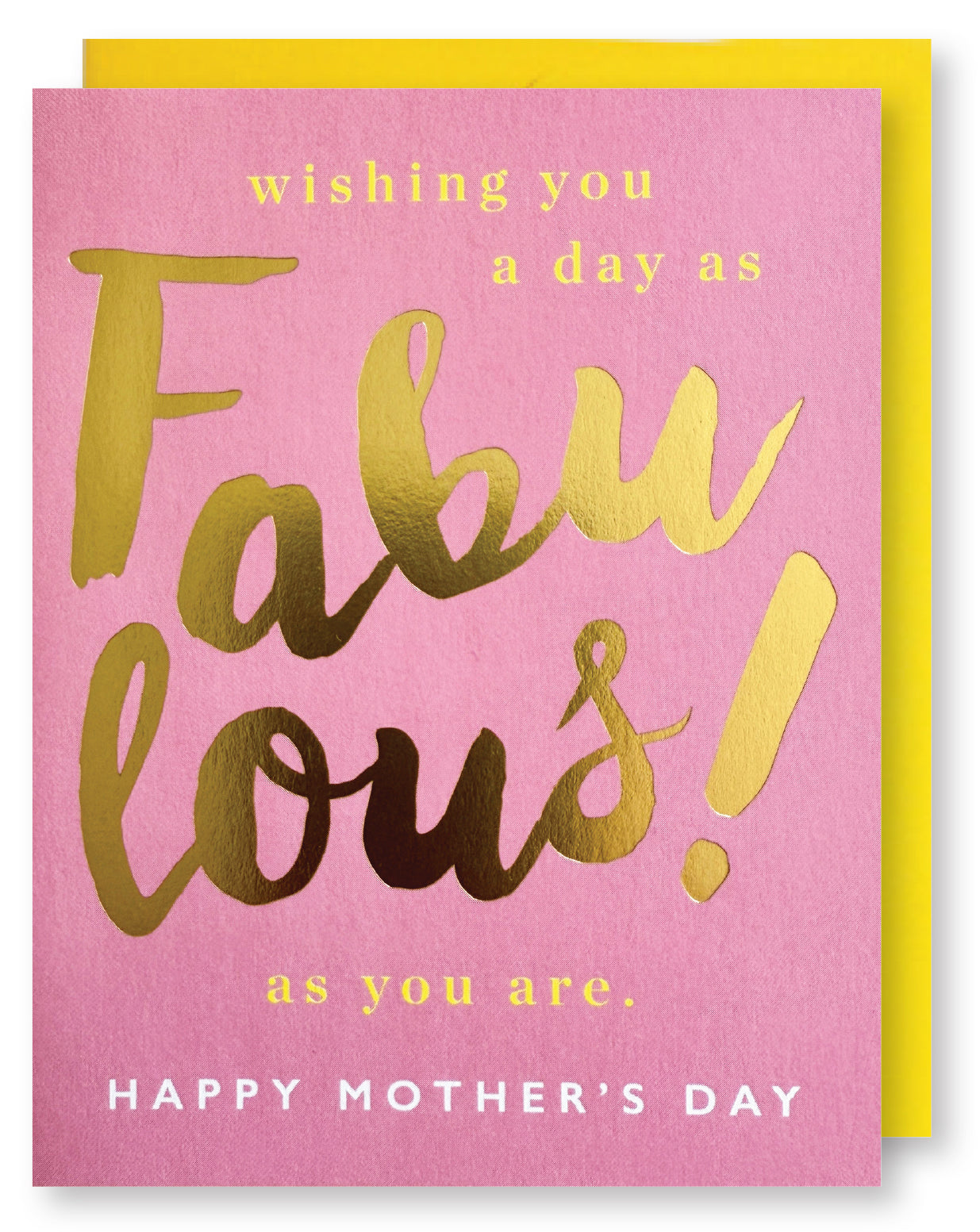 New design for 2026! Playful typography is enhanced with gold foil against a pink background, and paired with a sunny yellow envelope. This is a Mother's Day card with pop!